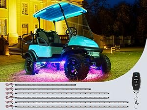 10L0L Golf Cart Underglow LED Light Strip Kit with Canopy Lights, 24 Modes Glow Neon Underbody Lighting with Wireless Remote Control, Sound Active, Water Resistant Flexible Tubes 6 Pack : Sports & Outdoors